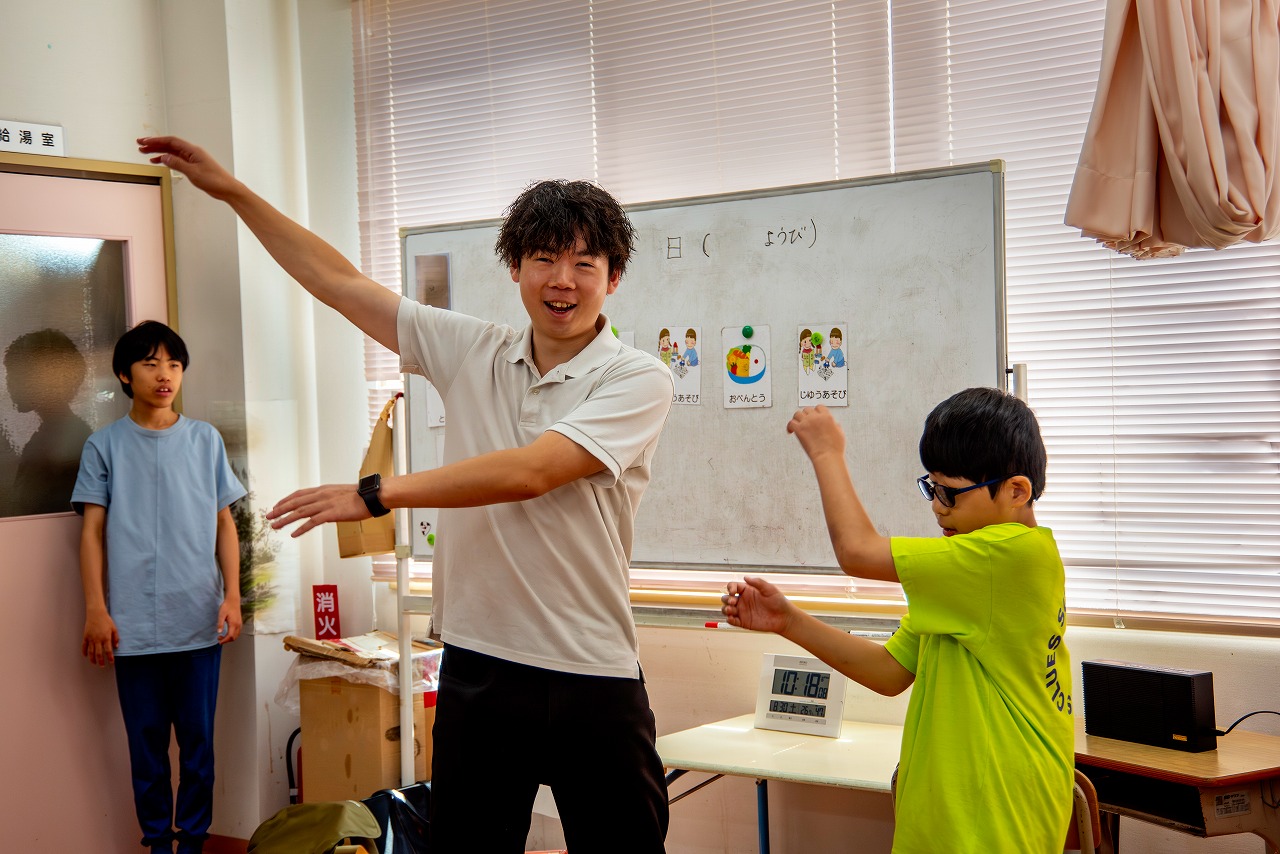 学校通学中の障害児が、放課後、土曜日、夏休み等の長期休暇中において、生活能力向上のための訓練等を継続的に提供することにより、学校教育と相まって障害児の自立を促進するとともに、放課後等の居場所づくりを行います。放課後は、学校、休業日は自宅とセンター間の送迎サービスがあります。