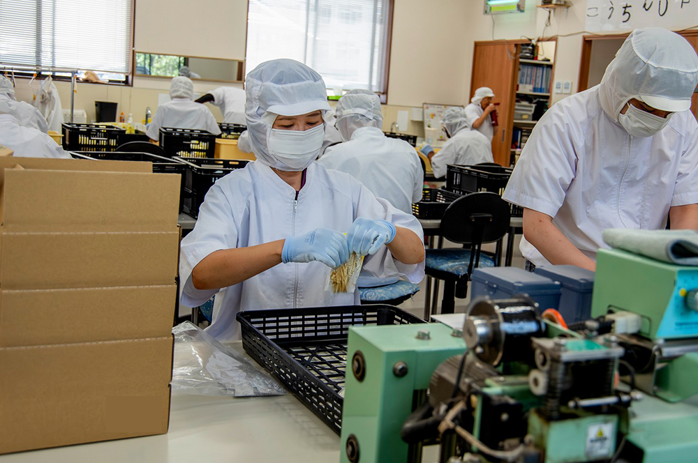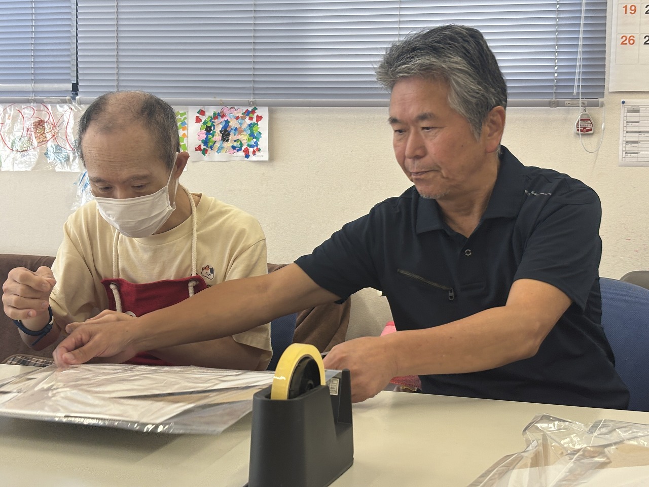 寒干大根の袋詰め・箱詰め他各種下請け作業。作業の他に、生活密着型のプログラムとして買い物学習・体力づくり・調理実習なども積極的に行い、仲間と交流を図りながら活動しています。