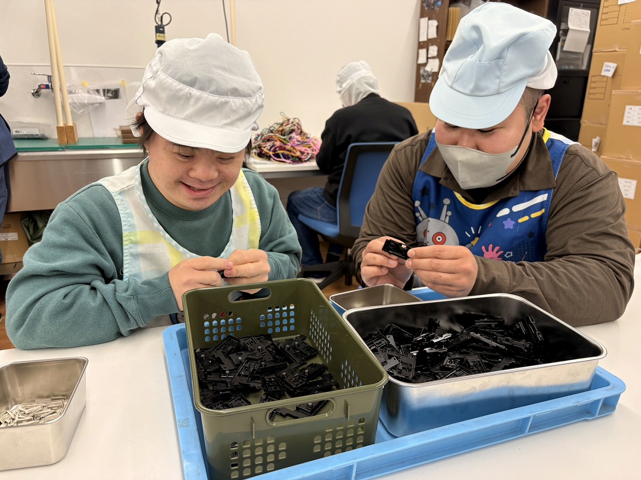 電子部品組み立て・封入作業・繊維作業の他に、生活密着型のプログラムとして買い物学習・体力づくり・調理実習なども積極的に行い、仲間と交流を図りながら活動しています。